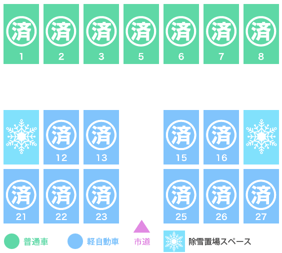 No.11、No.17は積雪時に雪を置くためのスペースです。ご理解くださる様お願いいたします。